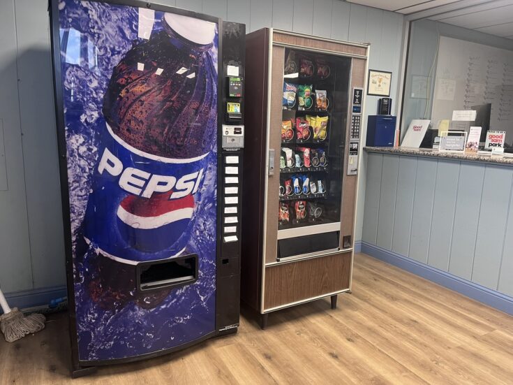 Our office has everything you could need for RV life! We provide full bathrooms, washers and dryers, a tv lounge area for relaxing and vending machines for a quick snack or soda!